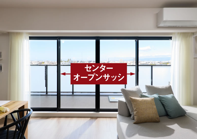 リビング・ダイニングは大きく開口できるセンターオープンサッシ。のびやかな採光・通風を暮らしに届けます。