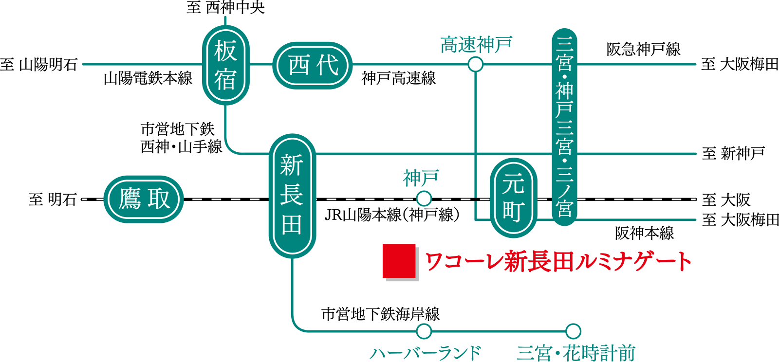 さらに、山陽電鉄・神戸高速線「西代」駅や、市営地下鉄の駅にも近く、まさに自由自在なマルチアクセスを実現します。