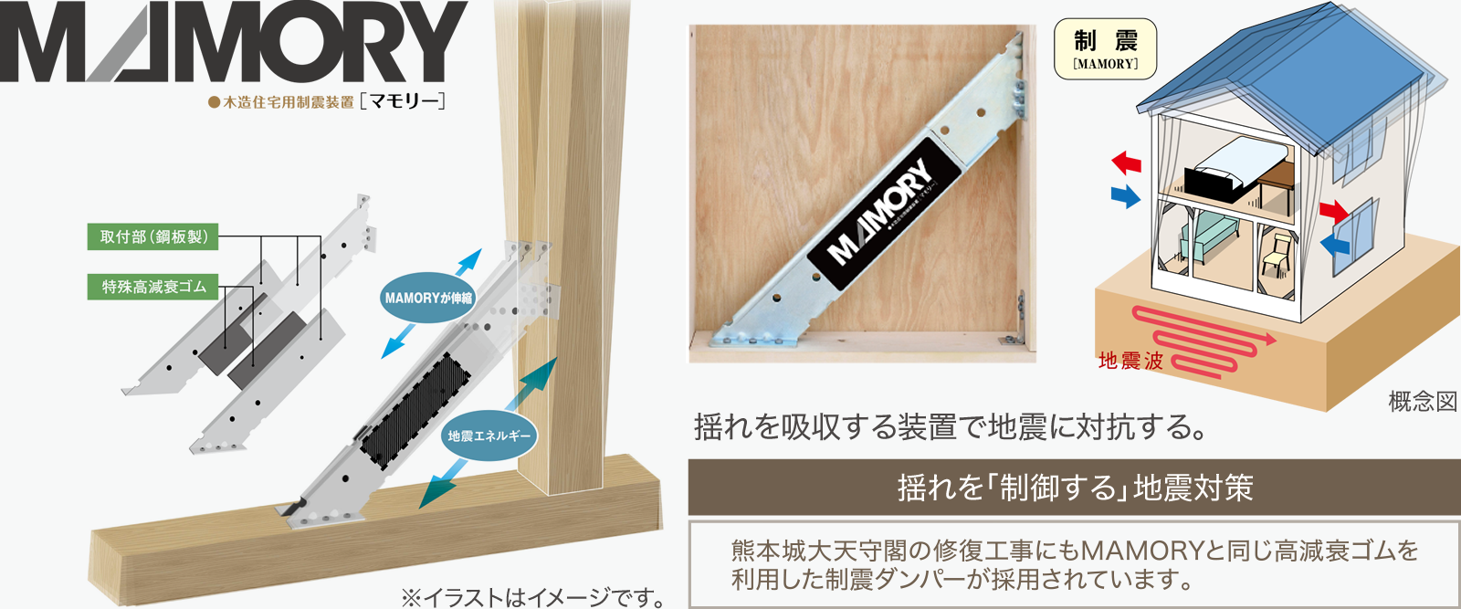 揺れを軽減する「木造住宅用制震装置」を採用。