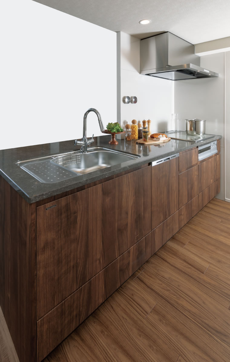 熱に強く汚れが染み込まない、水廻りやコンロ廻りに最適な高品位ホーローを採用。気になる汚れもひと拭きで落とせ、清潔に保てます。