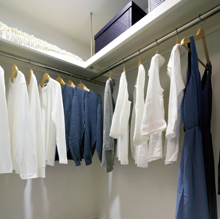 季節用品やワードローブなど多彩な生活アイテムをたっぷり整理できる大容量のウォークインクロゼットを設けています。※タイプ・居室により仕様が異なります。