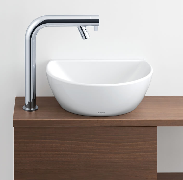 手洗い時の水はねを抑える深くて広いボウルは、大きなカーブでお手入れも簡単です。