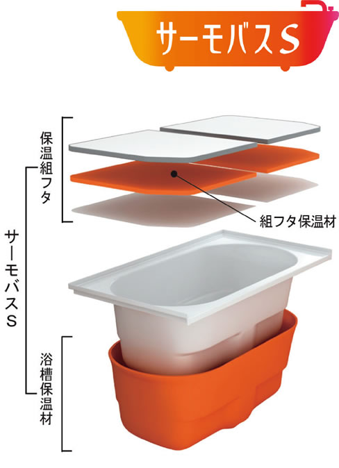 ○測定浴槽:サーモバスS(保温組フタ・浴槽保温材付)、従来浴槽(巻フタ・浴槽保温なし)