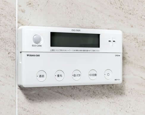通常の給湯や温度調整はもちろん、追い焚きや足し湯もボタン一つで操作できる便利なバスリモコンです。