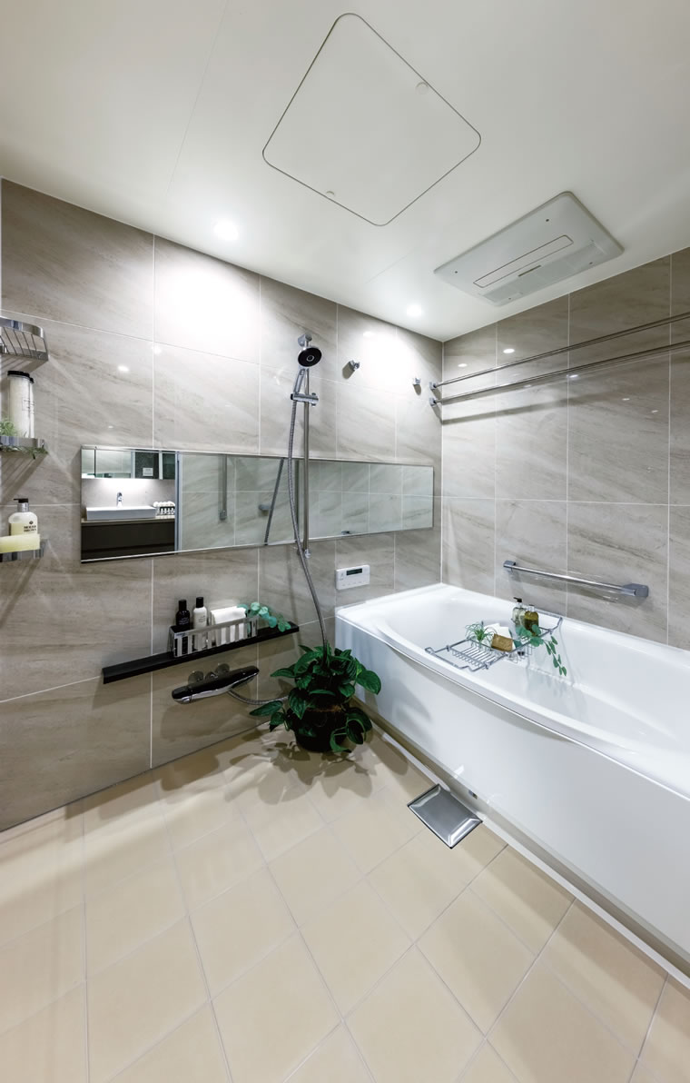 衣類・浴室乾燥、浴室暖房、換気、涼風機能がついた便利な浴室暖房乾燥機を採用しています。
