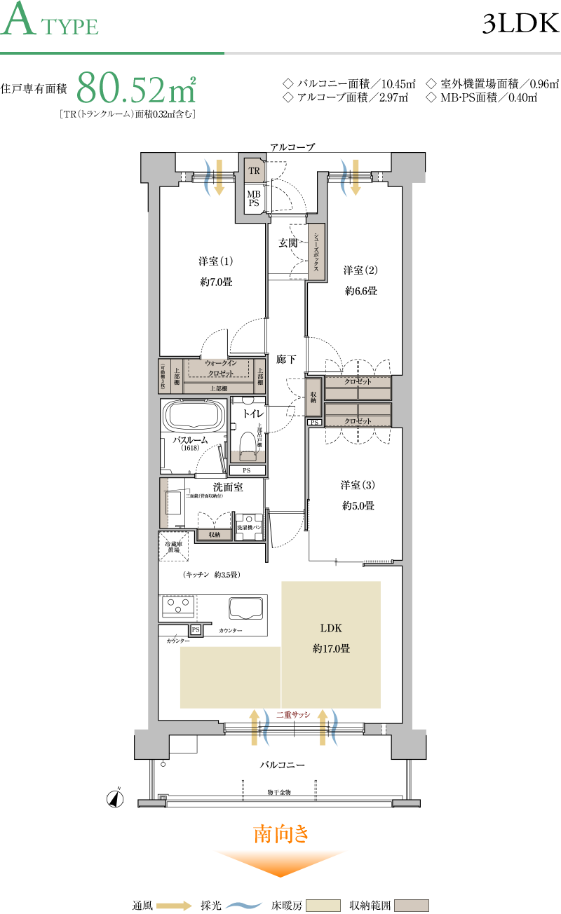 全邸南向き・平均84㎡台ゆとりの間取り