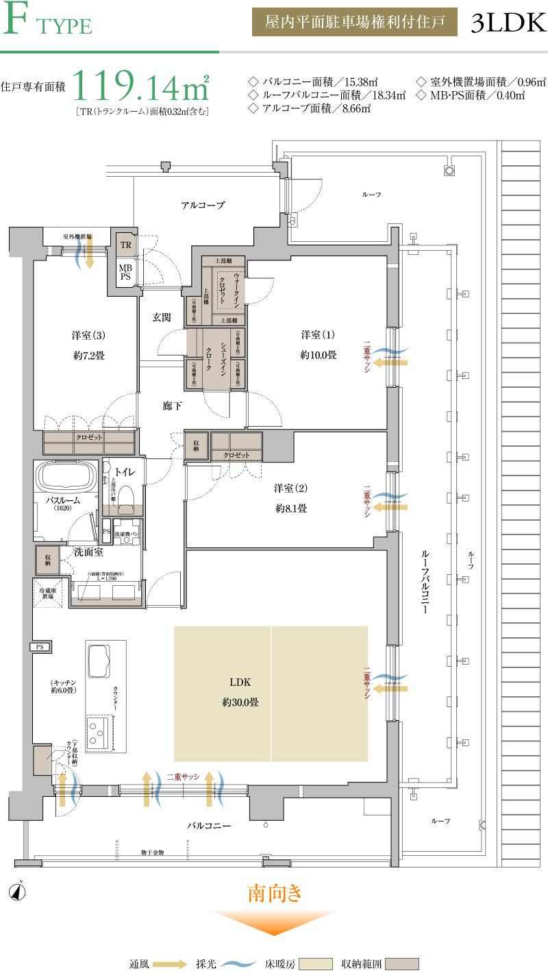 全邸南向き・平均84㎡台ゆとりの間取り
