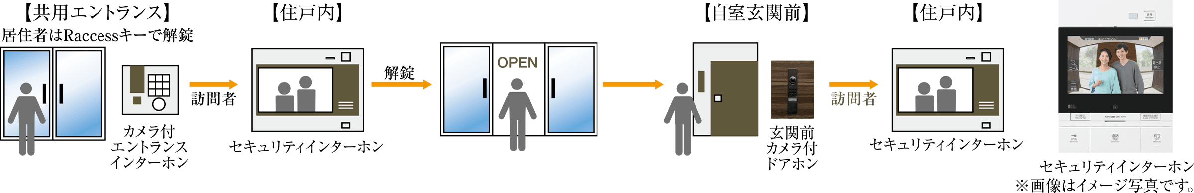 音声と画像により来訪者を確認。