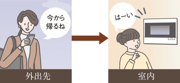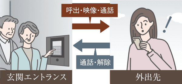 外出中に来客があった場合などにも、来訪者の映像確認や通話を外出先からできます。