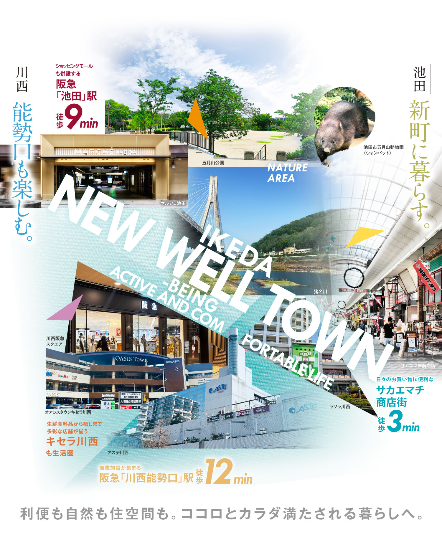 かつて城下町として発展した池田市の中で歴史文化財が数多く残る「新町エリア」。 「ワコーレ池田新町レジデンス」はこの地を象徴する「池田城跡公園」や 「五月山」を間近に望む地に誕生。 古くから人が暮らし、成熟を重ねた“池田の真骨頂”ともいえる 心地よい住環境が、日々の舞台に。