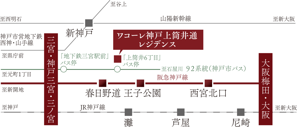※掲載の交通所要時間は朝の通勤ラッシュ時(7:00〜9:00)のもので、曜日・時間帯により多少異なる場合があります。また、乗換え・待ち時間を含みます。(2025年5月現在)※徒歩分数は80mを1分として算出(端数切り上げ)した概算時間です。※距離表示は現地からの地図上での概測距離です。