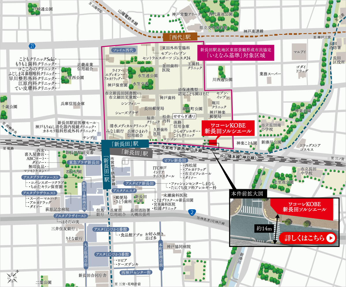 駅前を中心に多彩な利便施設が揃う「新長田」駅。