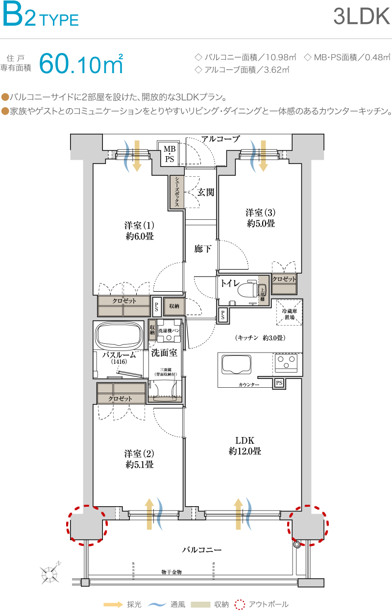 開放的な3方角地に描く