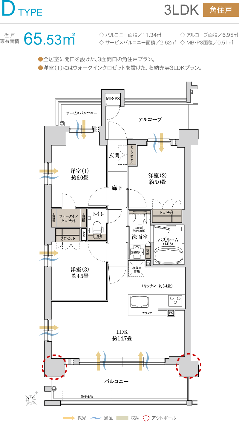 全邸南東向きの間取り
