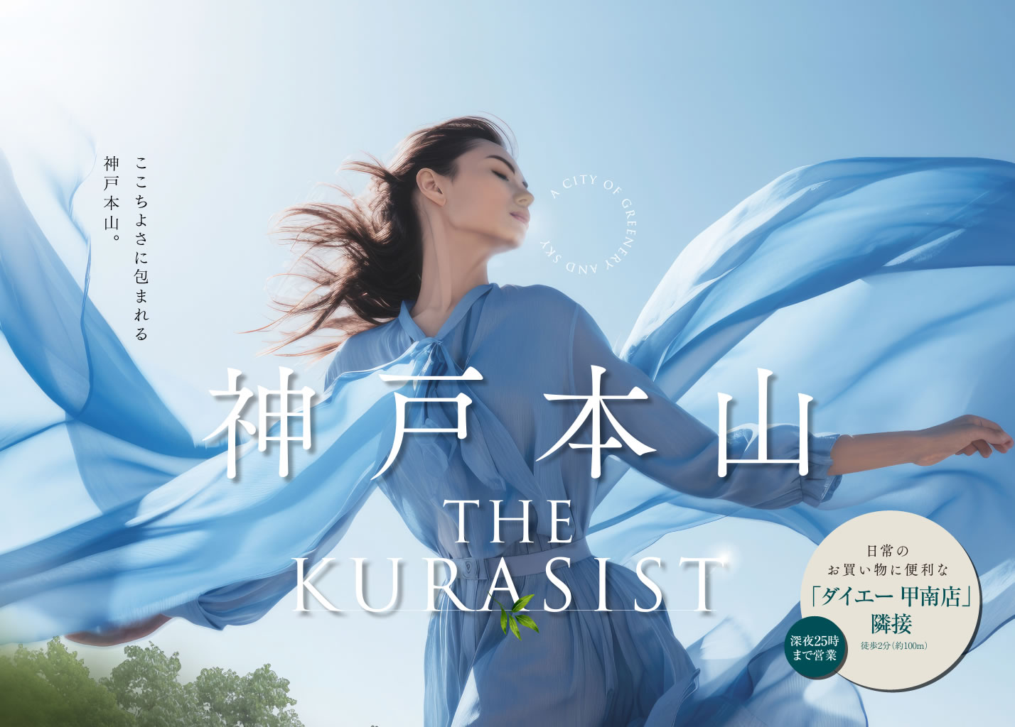 ここちよさに包まれる神戸本山。神戸本山 THE KURASIST[日常のお買い物に便利な「ダイエー 甲南店(深夜25時まで営業)」隣接 徒歩2分(約100m)]