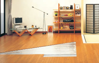 冬でも日溜まりのような温もりで暮らしを包むガス温水床暖房“ヌック”です。空気を汚さないクリーンな暖房システムです。※リビングに設置。
