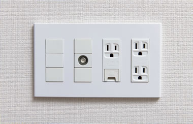 電気コンセントに加え、テレビ、電話、インターネット接続用のブランクチップを一体化したコンセントを採用しています。※居室等により仕様が異なります。