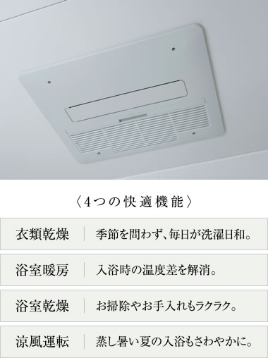 衣類・浴室乾燥、浴室暖房、換気、涼風機能がついた浴室暖房乾燥機です。