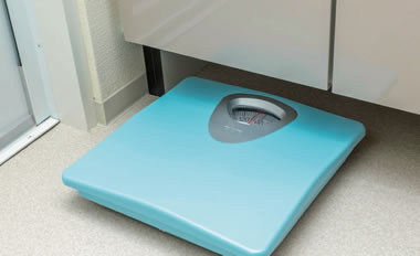 洗面化粧台の下部にヘルスメーターが収納できるスペースを確保しています。※ヘルスメーターのサイズには制限があります。
