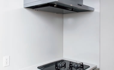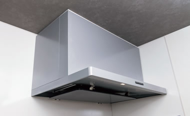 パワフルに煙や熱を吸引・排出するシロッコファン型のレンジフード。整流板はお手入れがスムーズな高品位のホーロー製です。