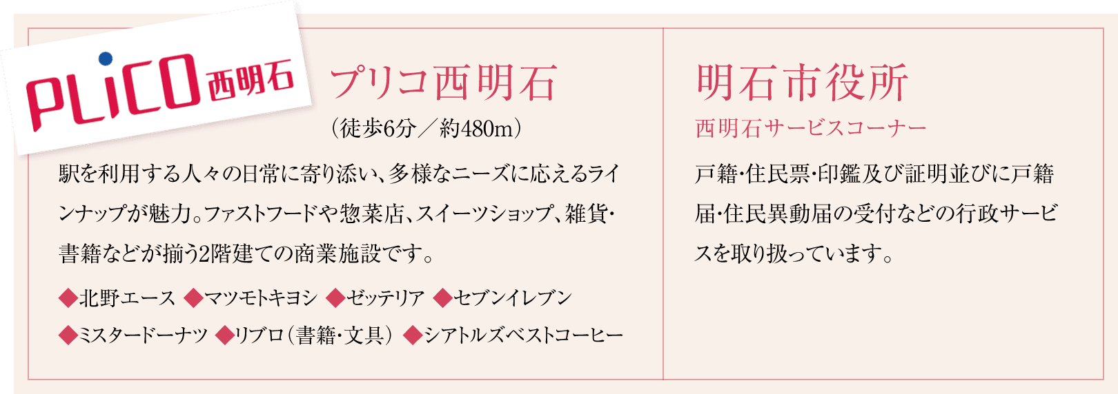 さらに、各種行政サービスを取り扱う「明石市役所西明石サービスコーナー」も併設され、