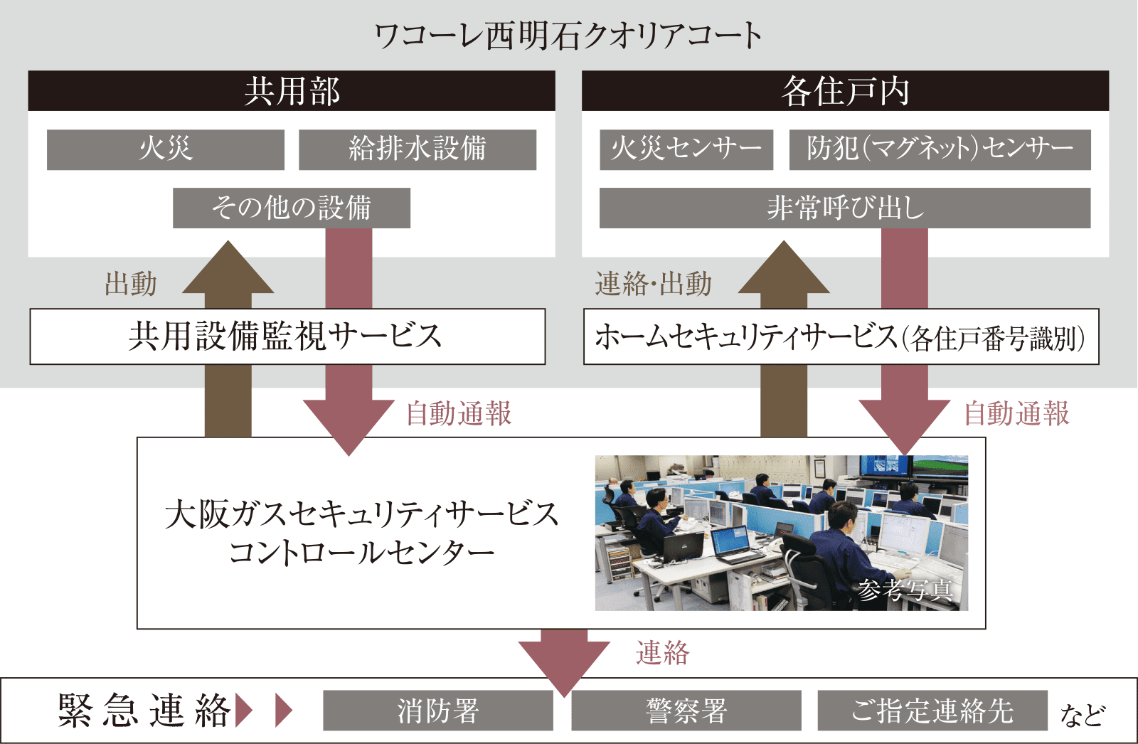 大阪ガスセキュリティサービスのコントロールセンターにて遠隔監視。
