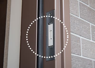 大阪ガスセキュリティサービスと連動した防犯(マグネット)センサーを設置。留守時などの不法侵入に対応します。※全住戸の玄関および2階住戸の開口部(一部。)に設置。(FIX窓・縦上り出し窓・バスルーム窓・面格子設置窓を除く。)
