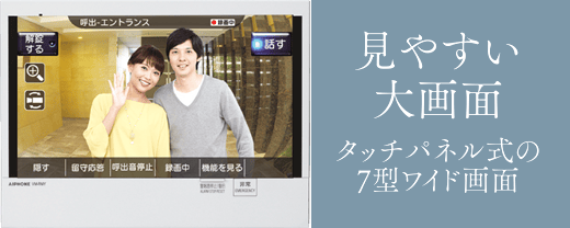 共用エントランス・自室玄関前の来訪者を、カラー映像と音声で確認可能。便利なハンズフリータイプです。