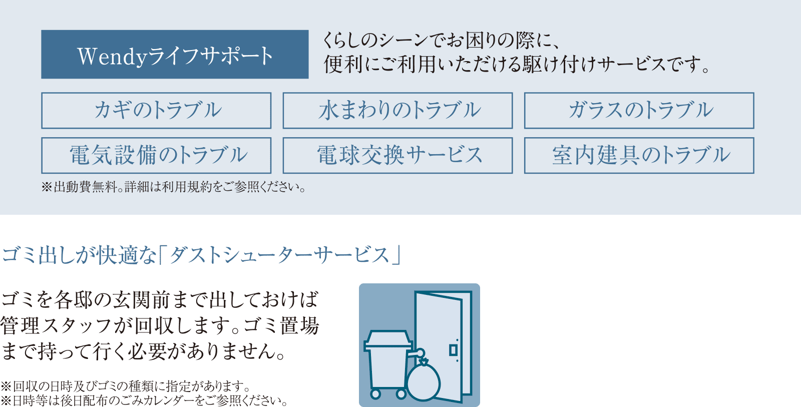 ※掲載の各種サービスは管理会社・(株)合人社計画研究所を通じて提供されるものであって、和田興産(株)が提供するものではありません。※掲載の各種サービスの内容は予定につき変更となる場合があります。