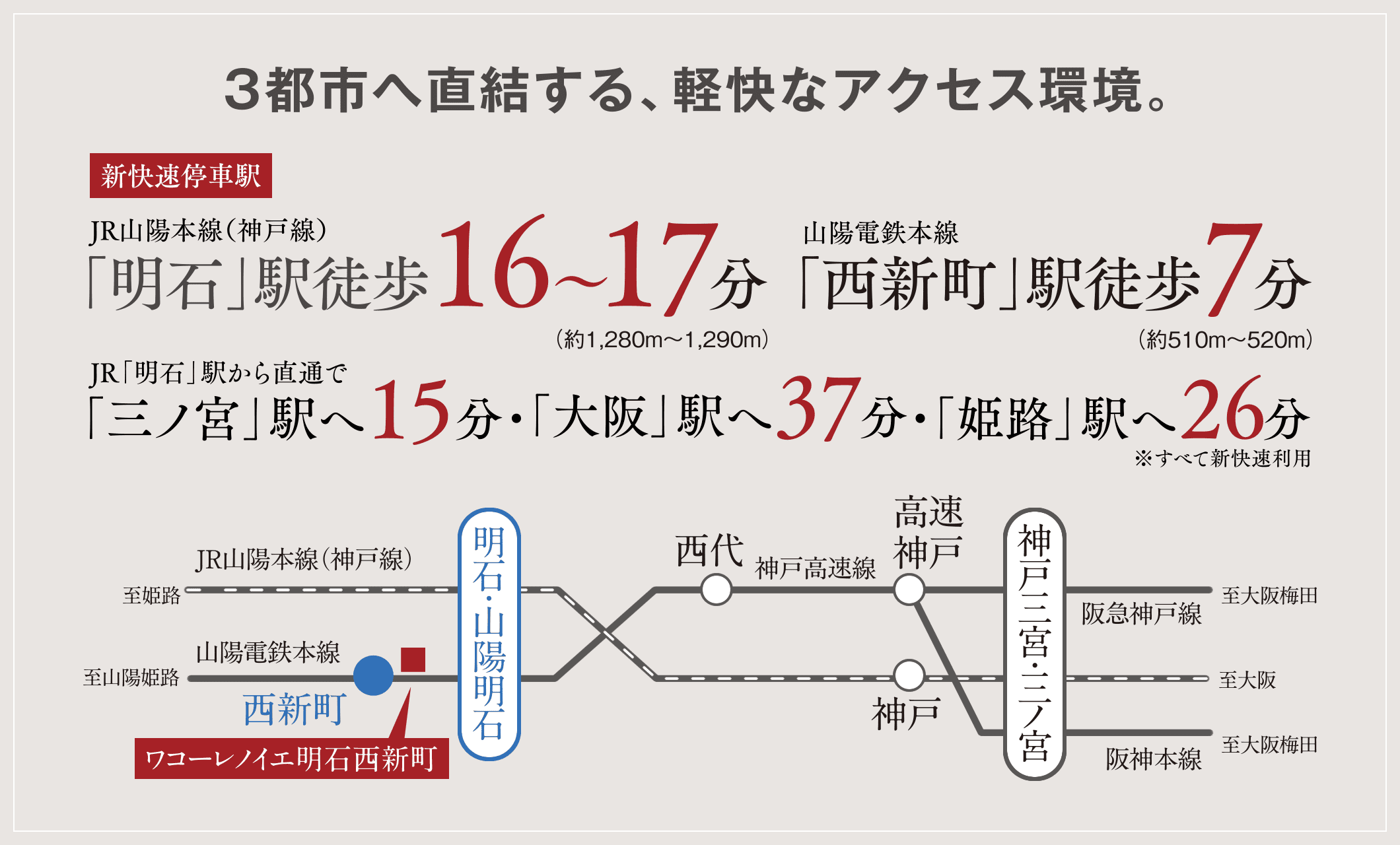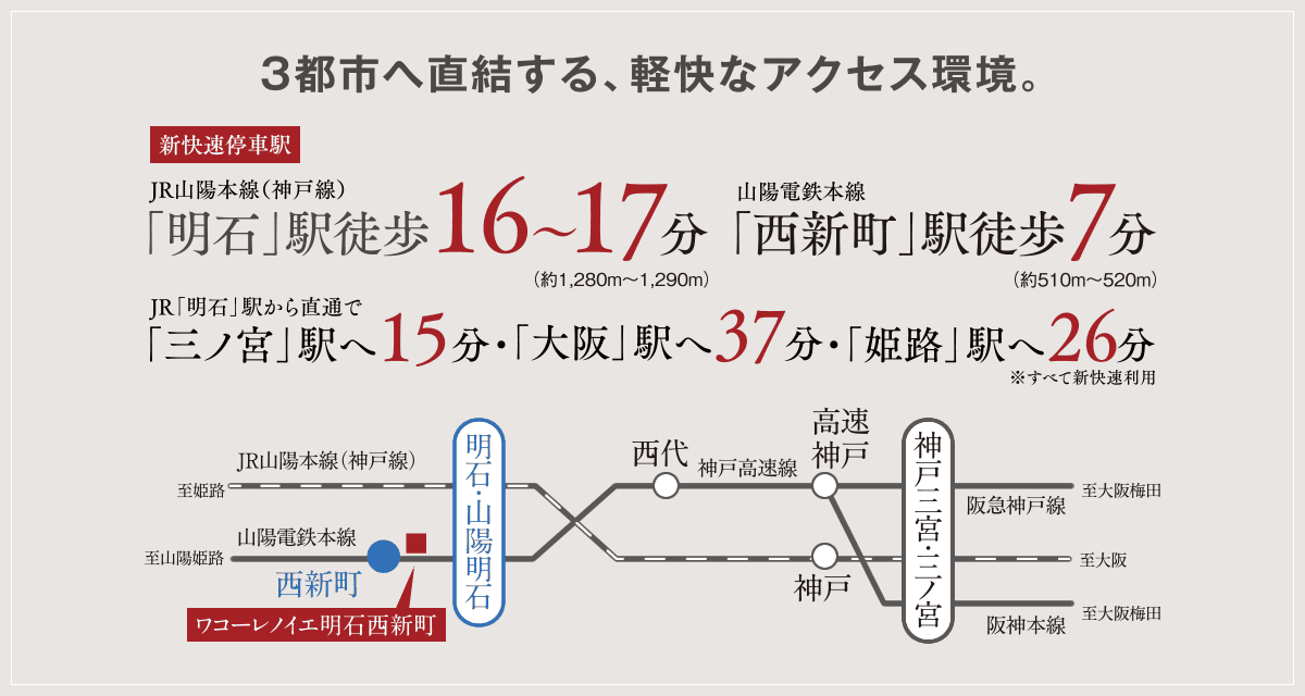 都市機能が充実する「明石」の中心に寄り添いながら、喧騒を一歩離れる「西新町」。