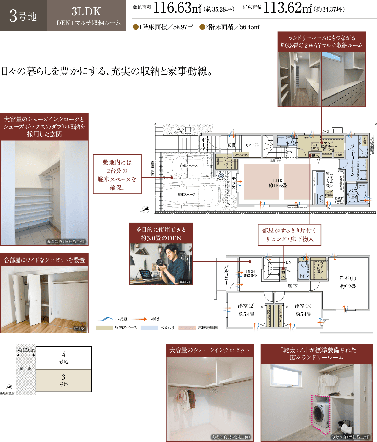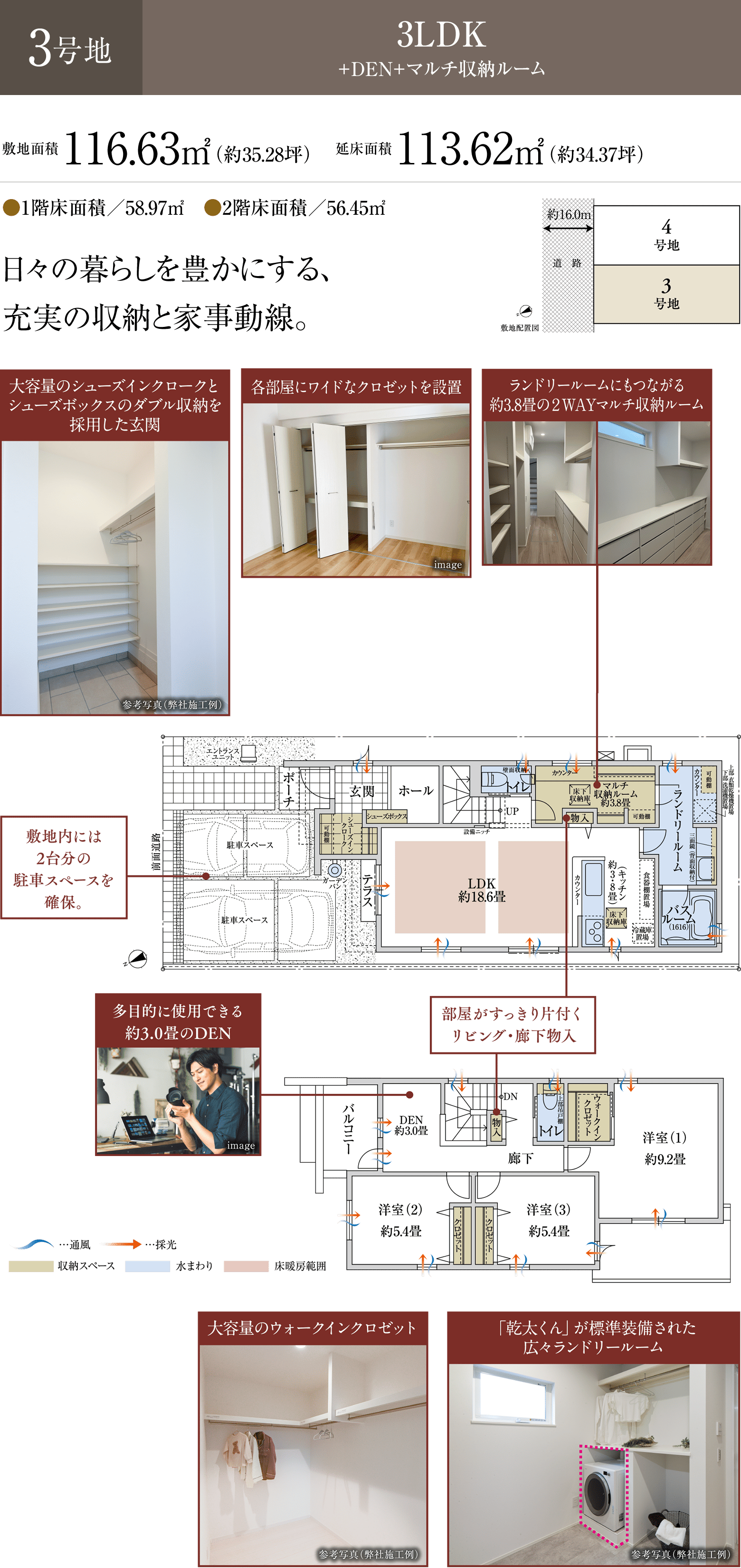 ※掲載の各階平面図・立面図は、設計図を基に描き起こしたもので、官公庁の指導、施工上の都合等により変更が生じる場合があります。あらかじめご了承ください。※掲載の写真は2025年10月にモデルハウスで撮影したものです。
