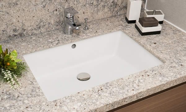 キズや汚れに強く高級感を備えた洗面カウンター。アンダーボウルには陶器、ワークトップにはフィオレストーン(高級人造大理石)を採用しています。