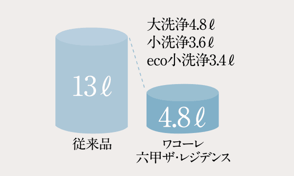 環境にやさしく、しかも経済的。洗浄使用量は従来品に比べ約71%の節水が可能(※)。水道料金を大幅に節約できます。