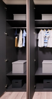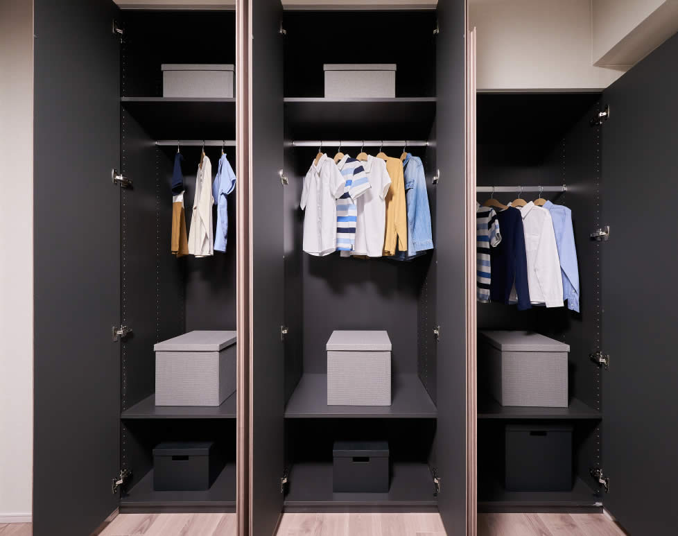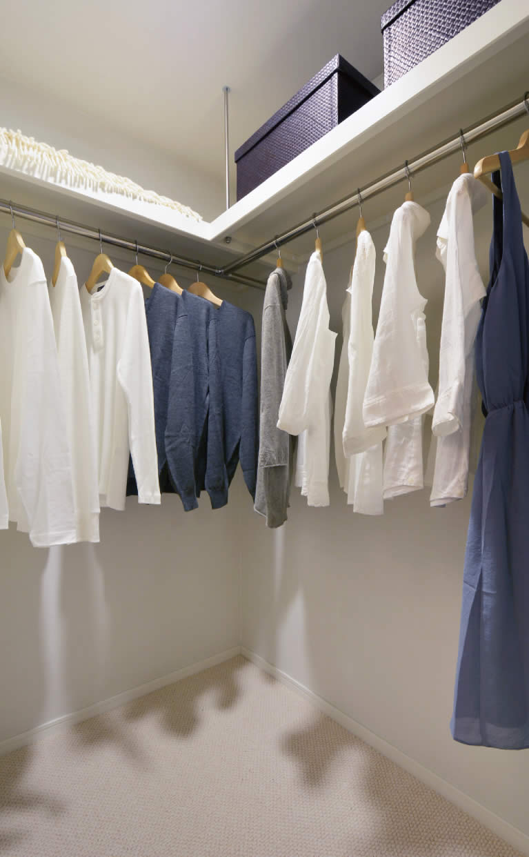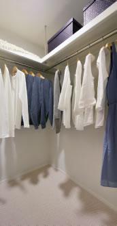 ハンガーパイプと上部棚(一部除く)をセットした機能的なクロゼット。身のまわりのアイテムがすっきりと収納できます。