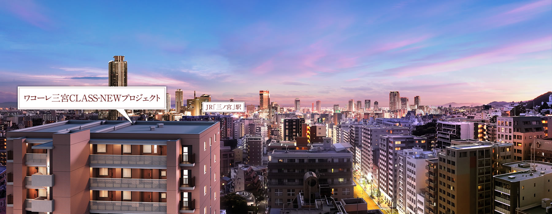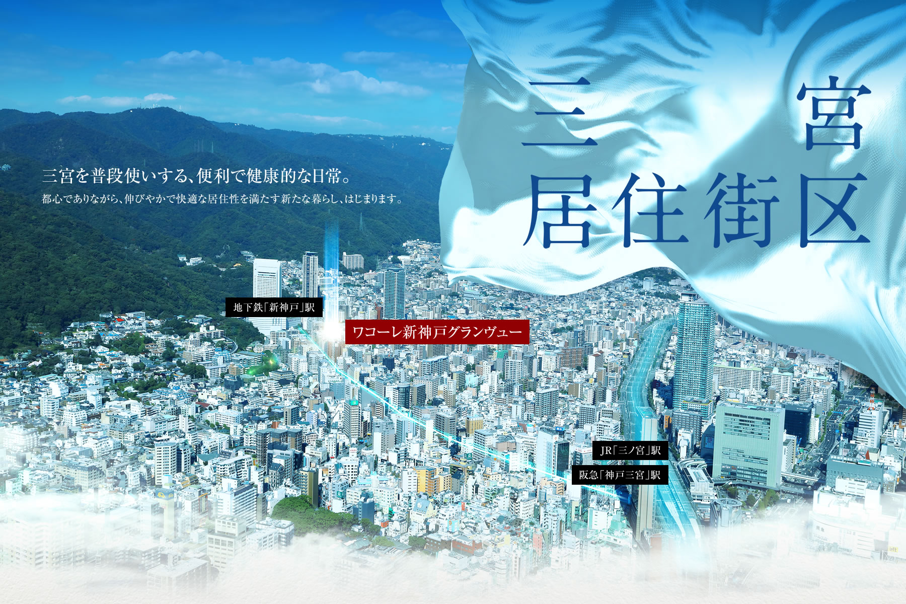 本プロジェクトは都心・三宮へ徒歩、自転車、地下鉄、バスと、