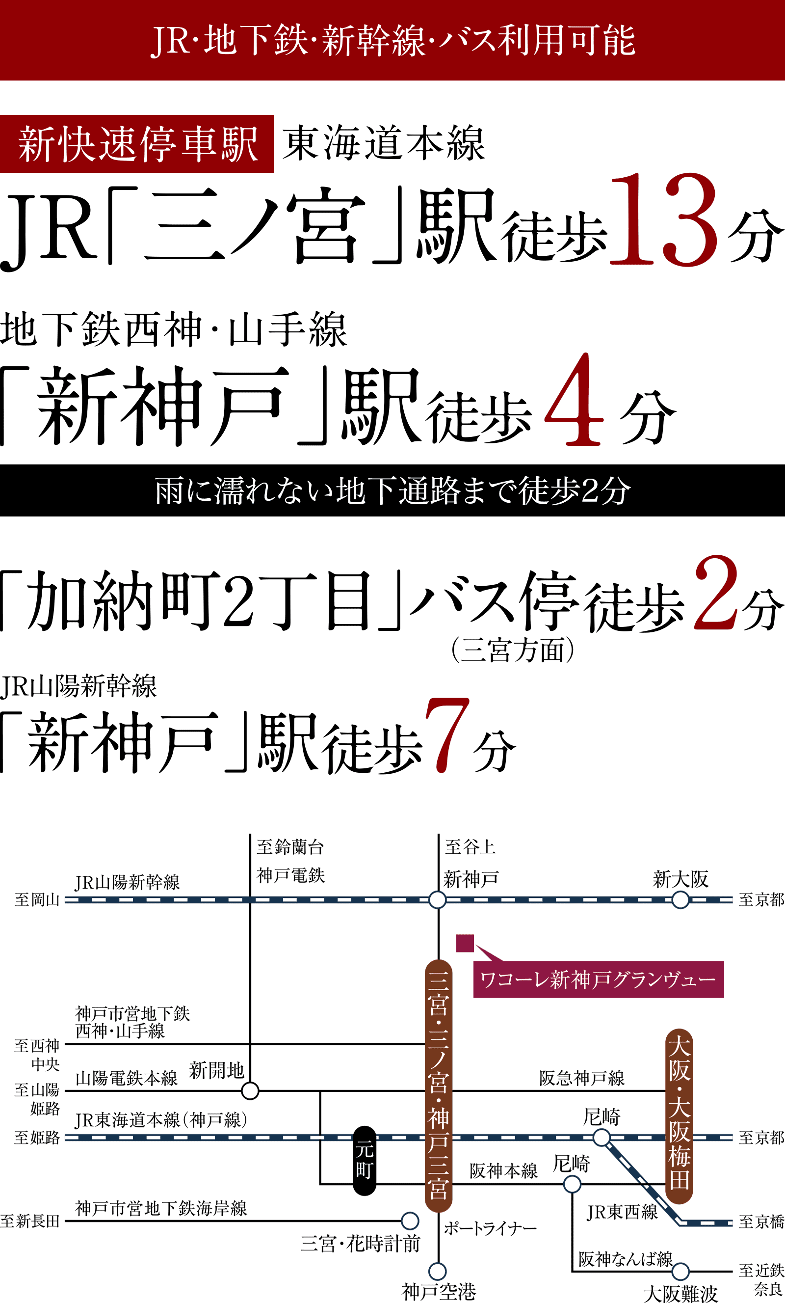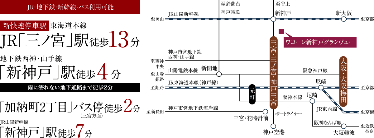 各線「三ノ宮・神戸三宮」・地下鉄・新幹線・バス