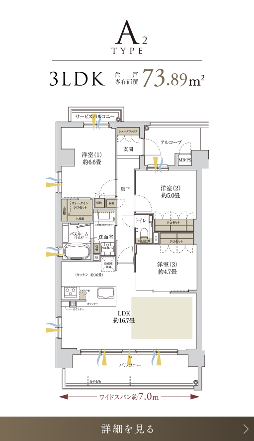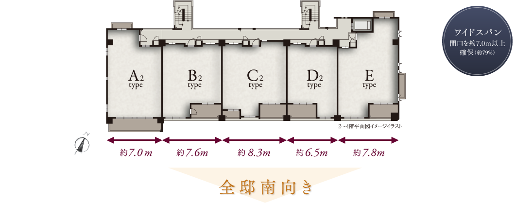 ライフスタイルに合わせて選べる、豊富な全9タイプのプラン。間口約7.0m以上のワイドスパンを採用(約79%)することで空間の広がりと採光面積を高めたゆとりのプライベート空間を創造しました。