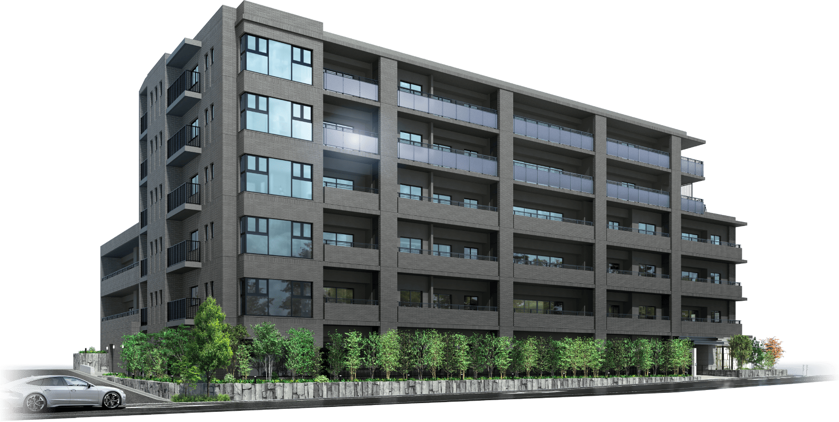 「雅~みやび~」をデザインコンセプトとして掲げ、ダークカラーのせっ器質二丁掛タイルを基調に重厚感ある佇まいを創出。また、基壇部や外構部には豊かな風合いと表情を描く天然石を採用。その一つ一つに繊細な意匠を凝らすことで、優雅な存在感を醸成。先人たちが築き上げた「住吉らしさ」を大切に守りながら、この地の新たなマスターピースとして愛され続ける建築美を追求しています。
