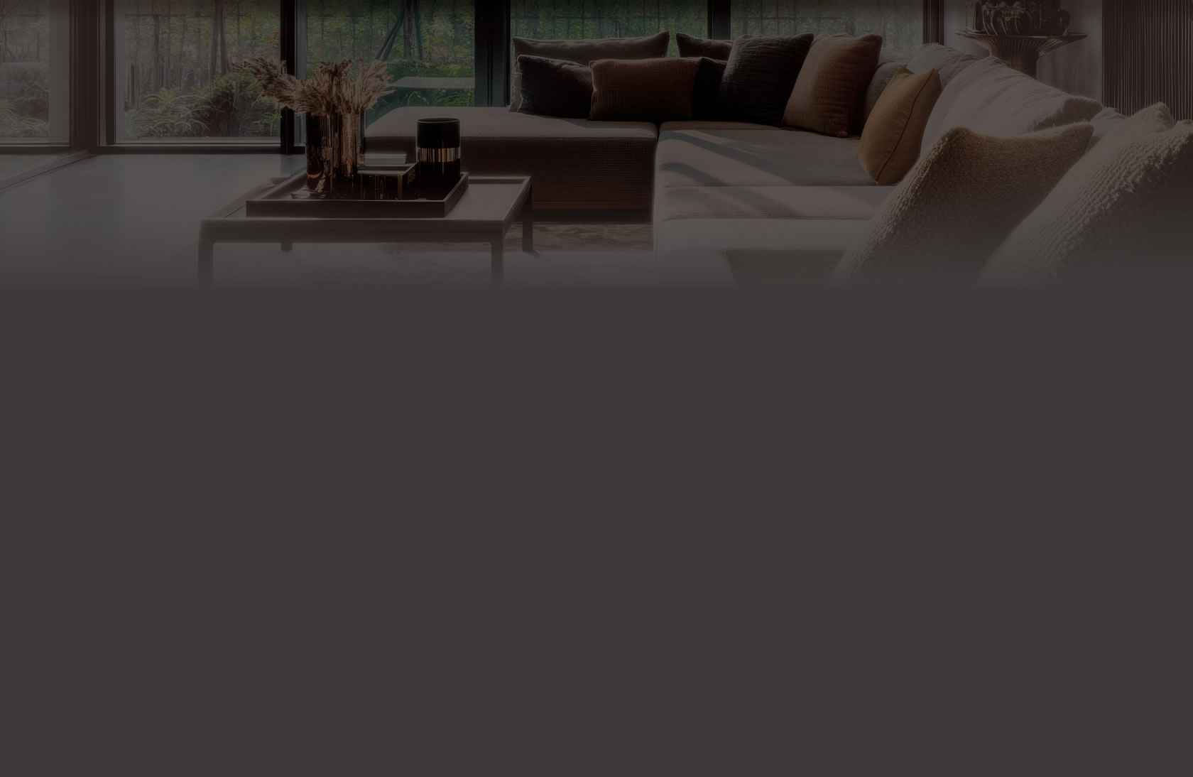 ガラス越しには豊かな緑彩が広がり、ゆったりとしたソファに身を沈め、寛ぎのひと時を優雅にお愉しみいただけます。